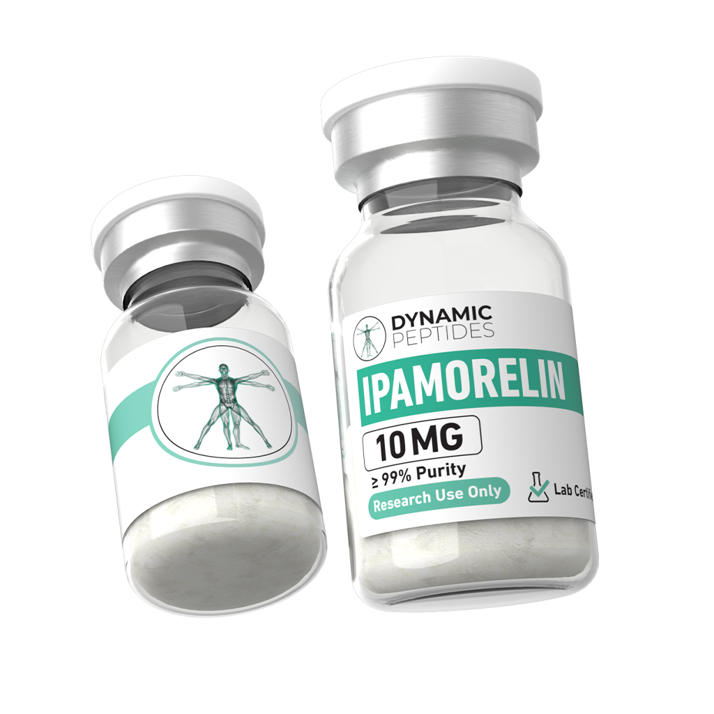 One vial contains 10mg of Ipamorelin by Dynamic Peptides. Substance chemical strictly intended for laboratory research only.